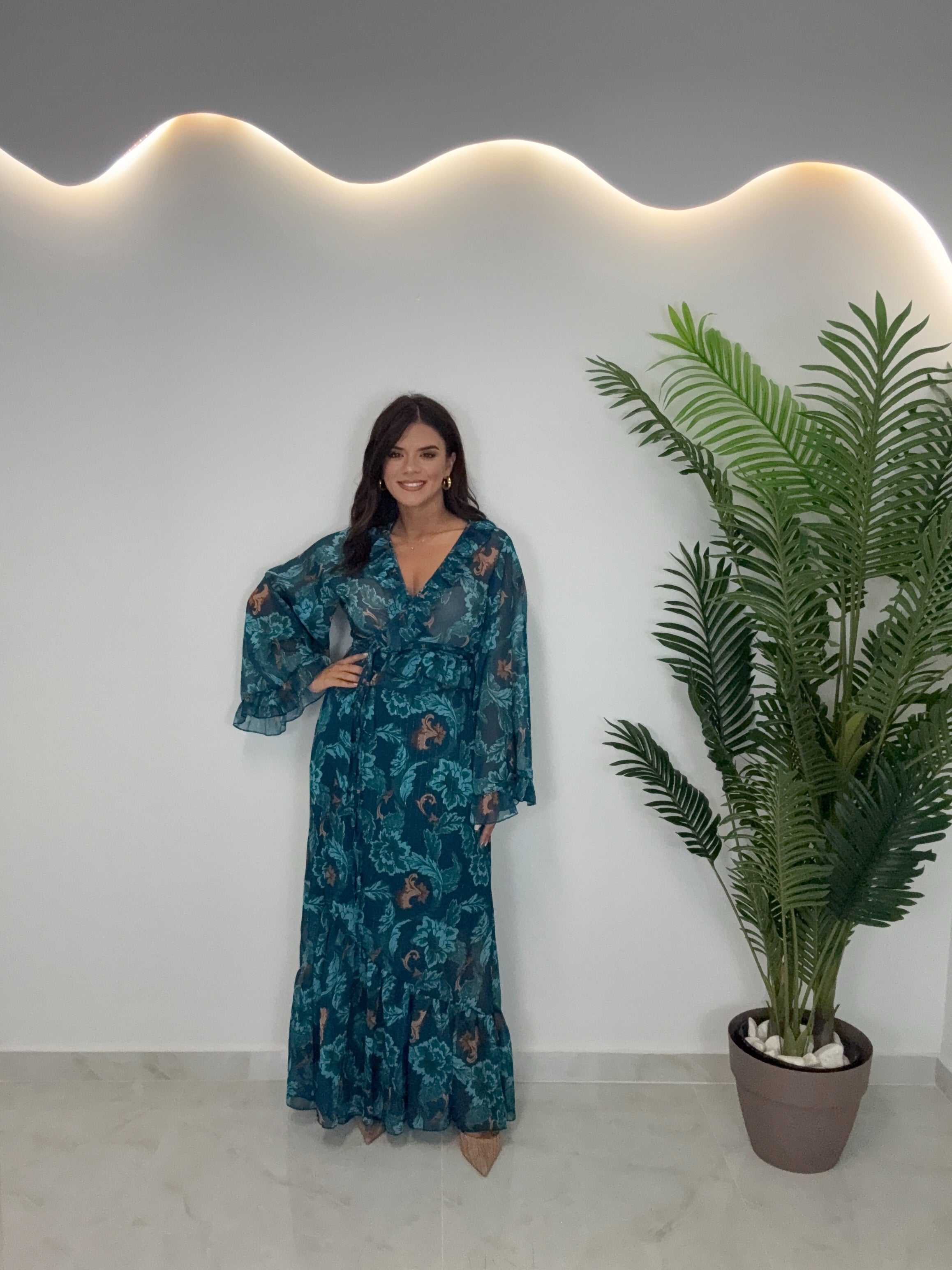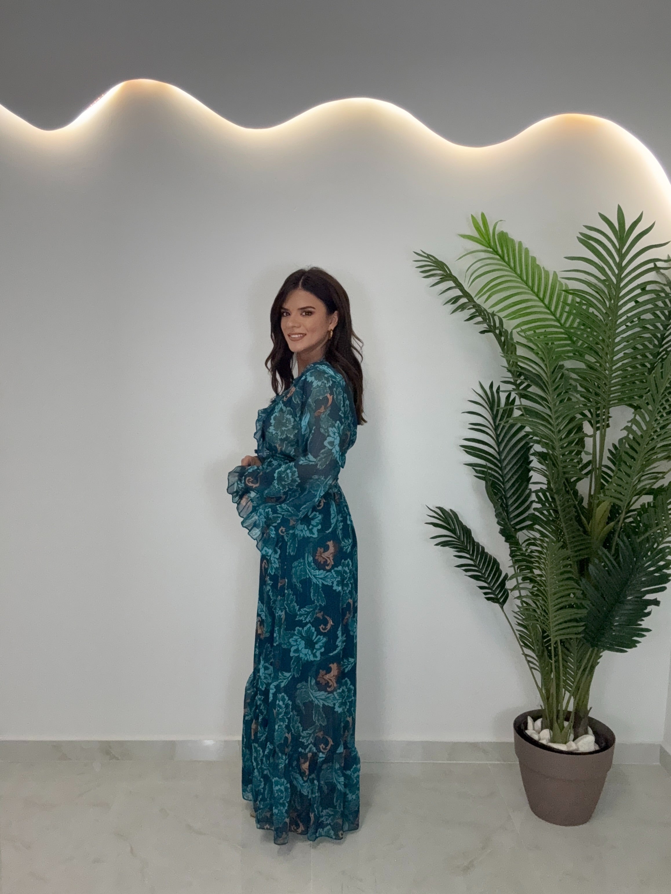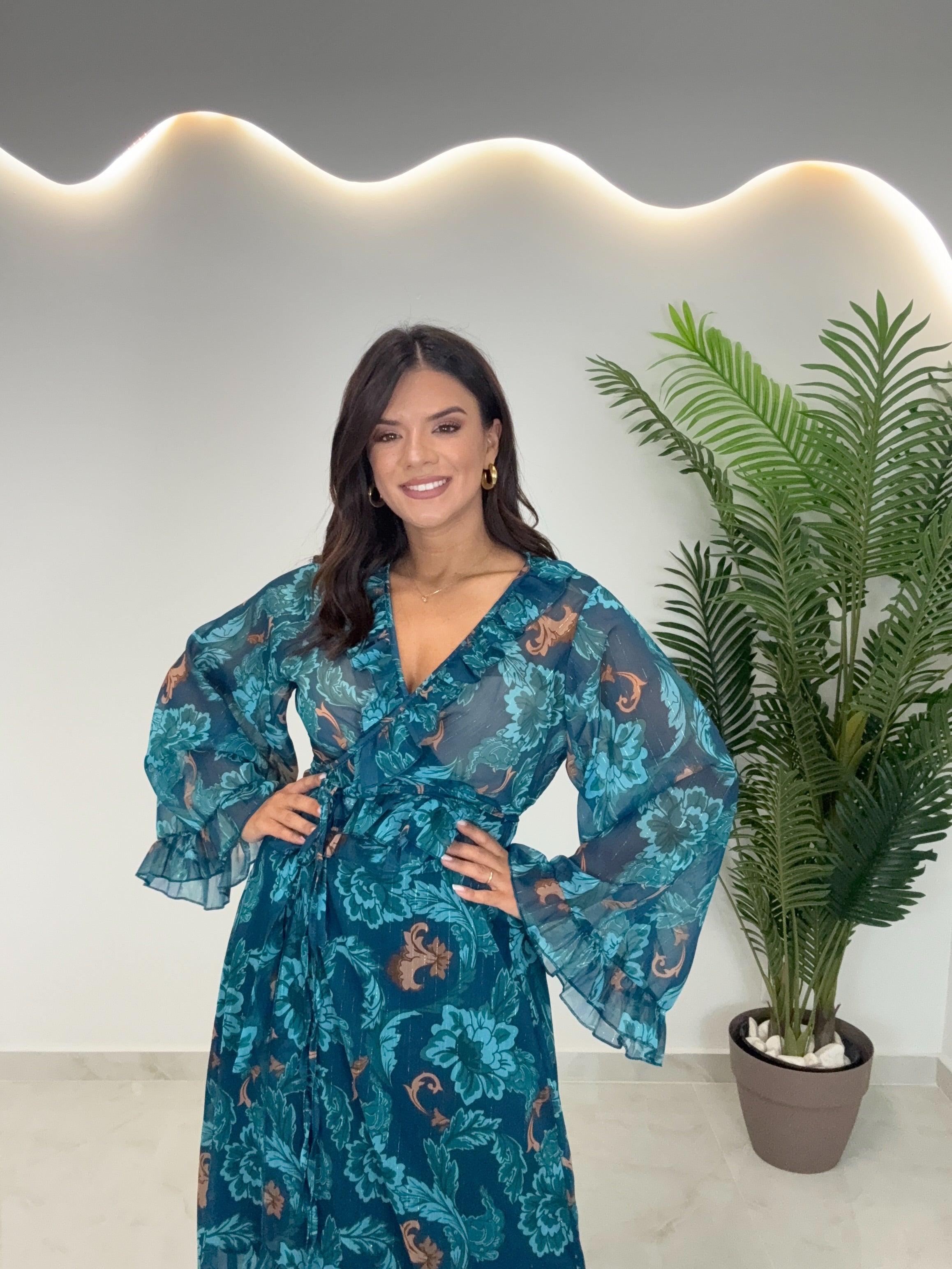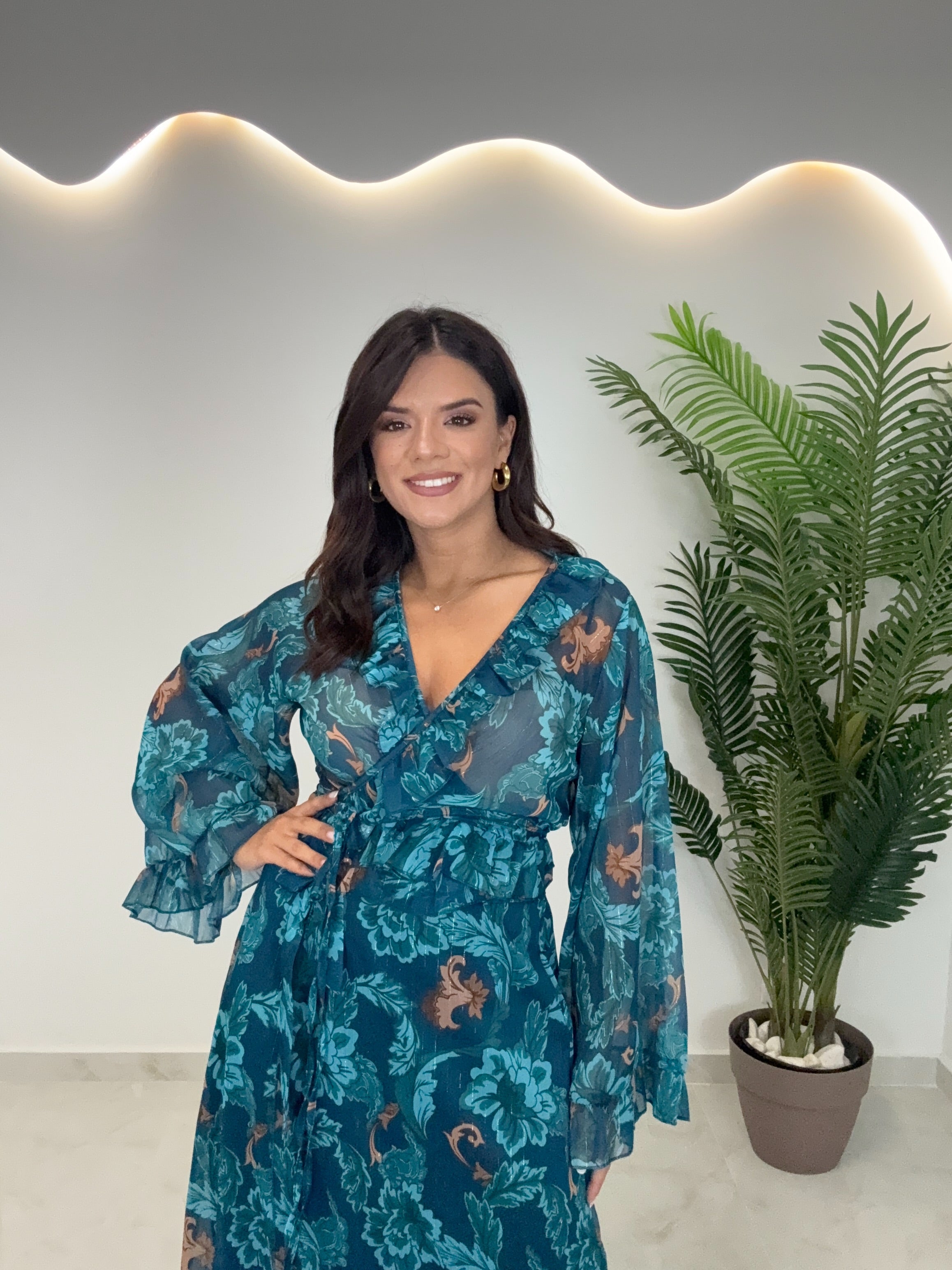 Floral Set , τοπ και φούστα με ασημοκλωστή