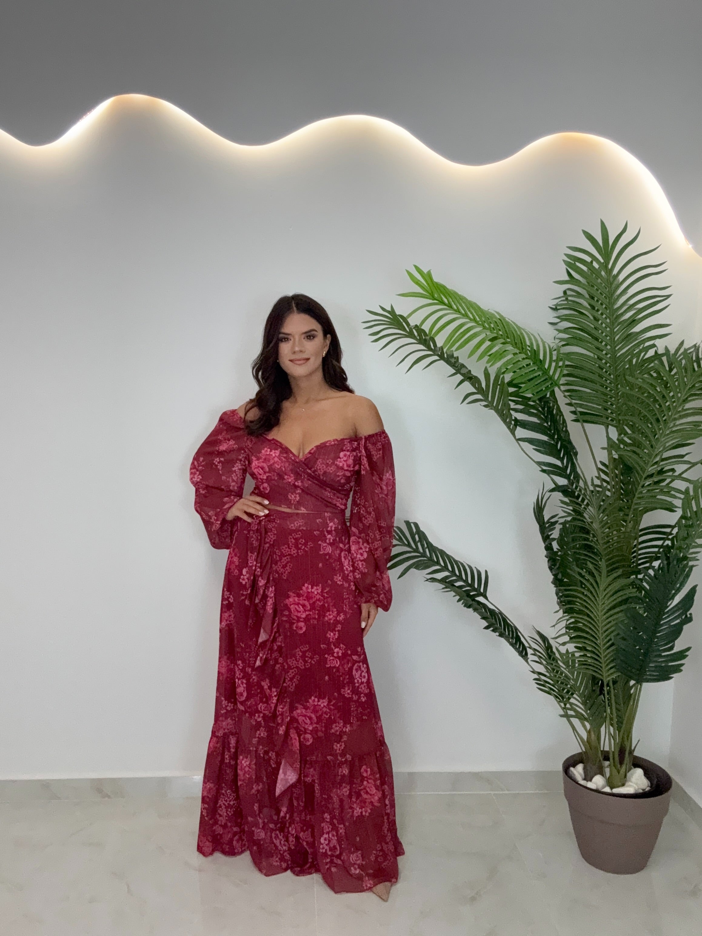 Γυναικείο σετ τοπ και φούστα με χρυσοκλωστή