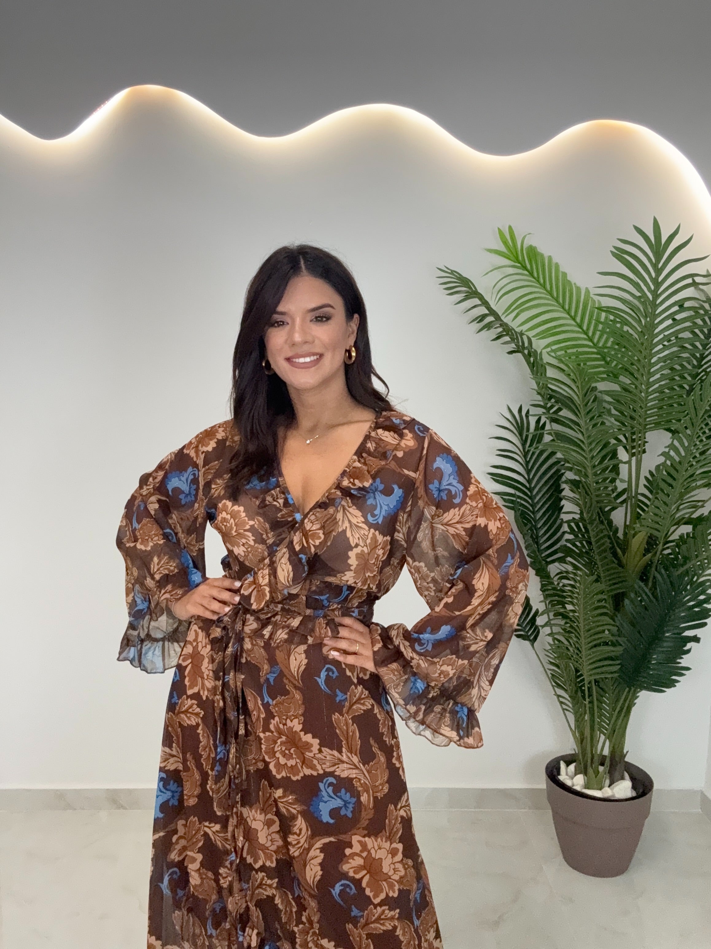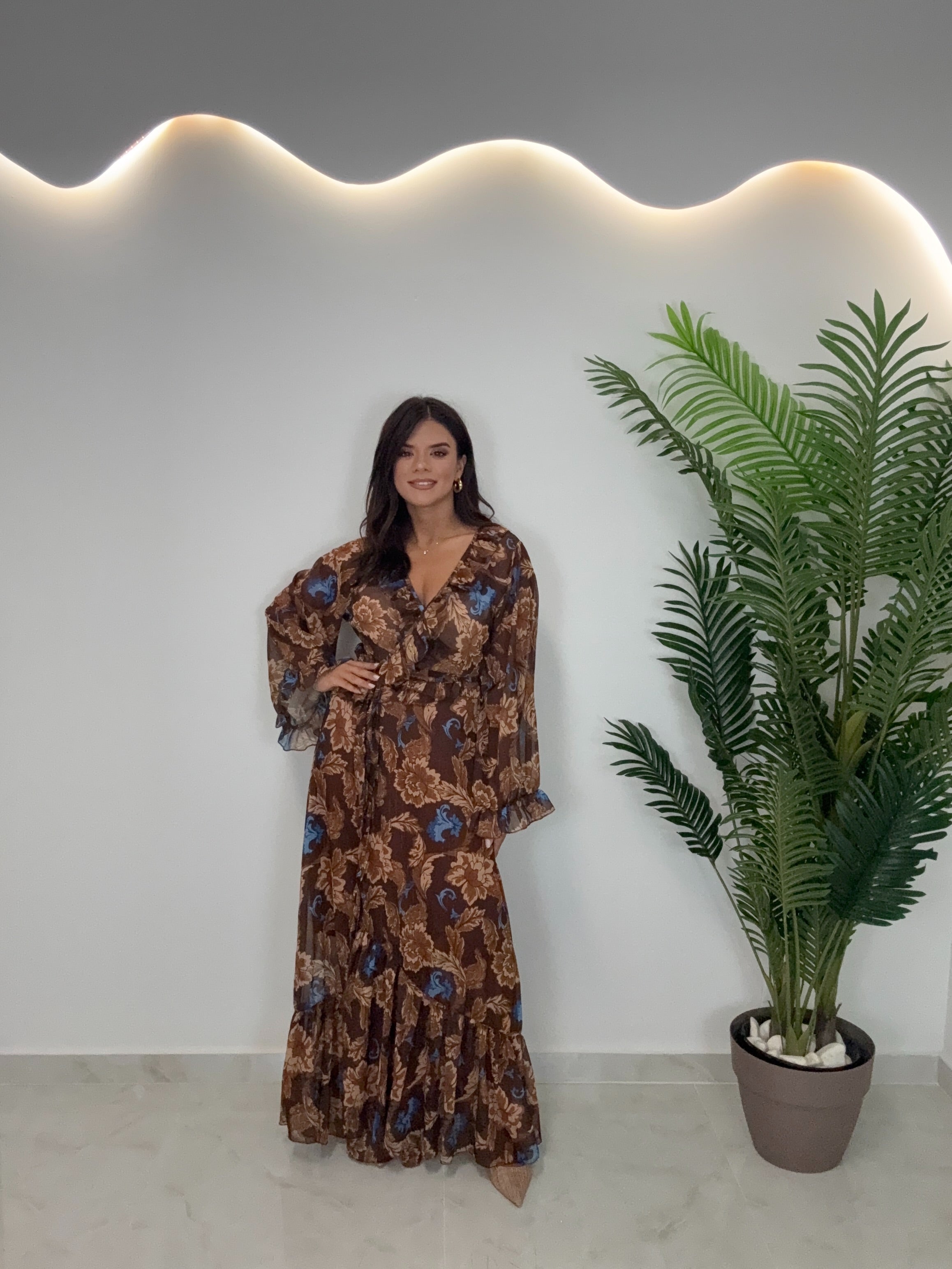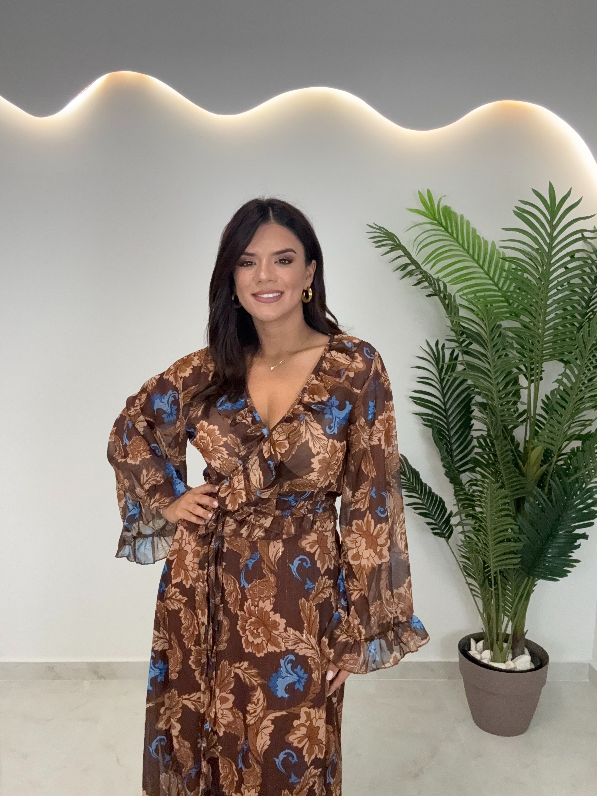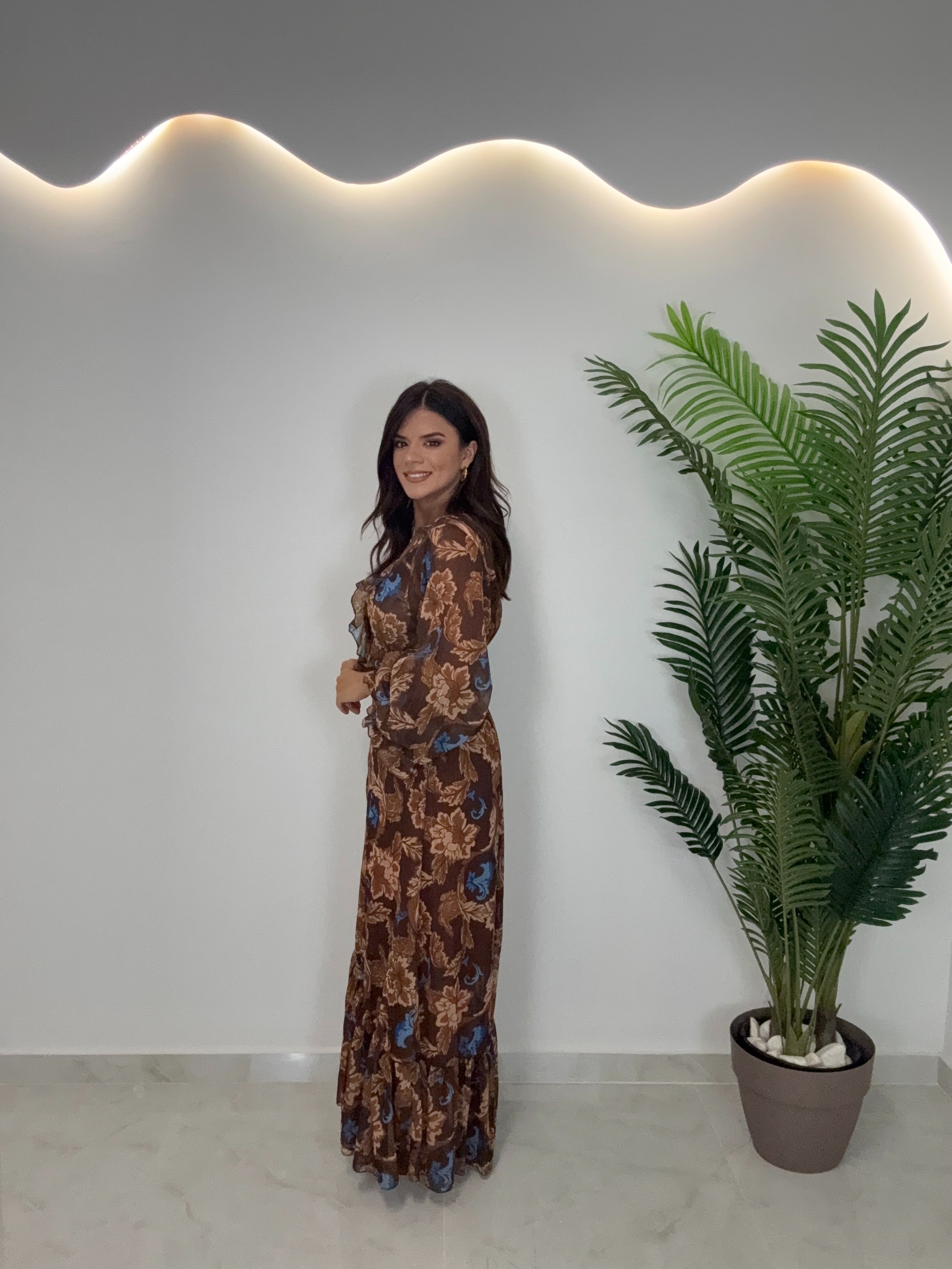 Floral Set , τοπ και φούστα με ασημοκλωστή
