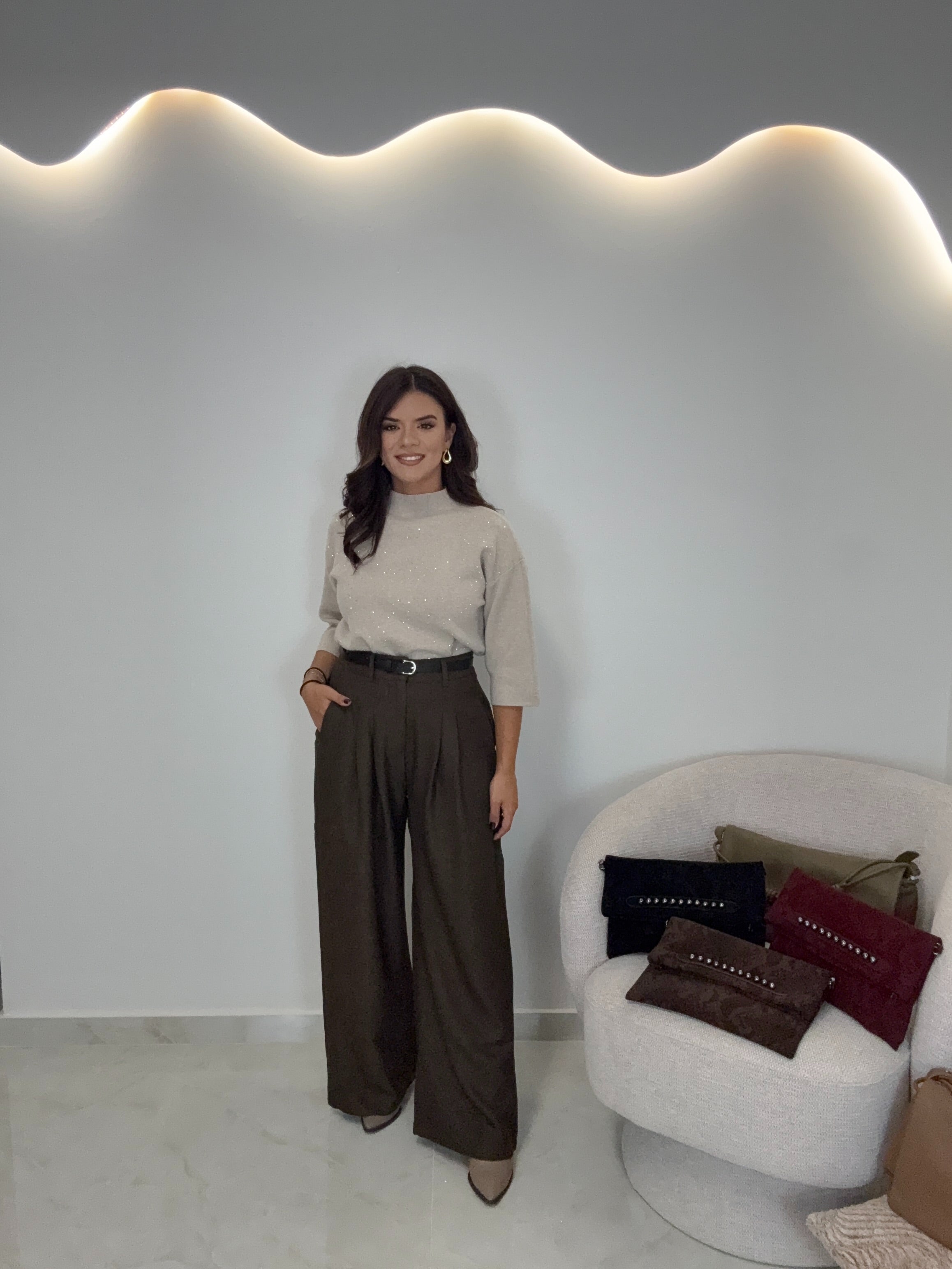 Παντελόνι σε άνετη γραμμή σε σοκολατί χρώμα