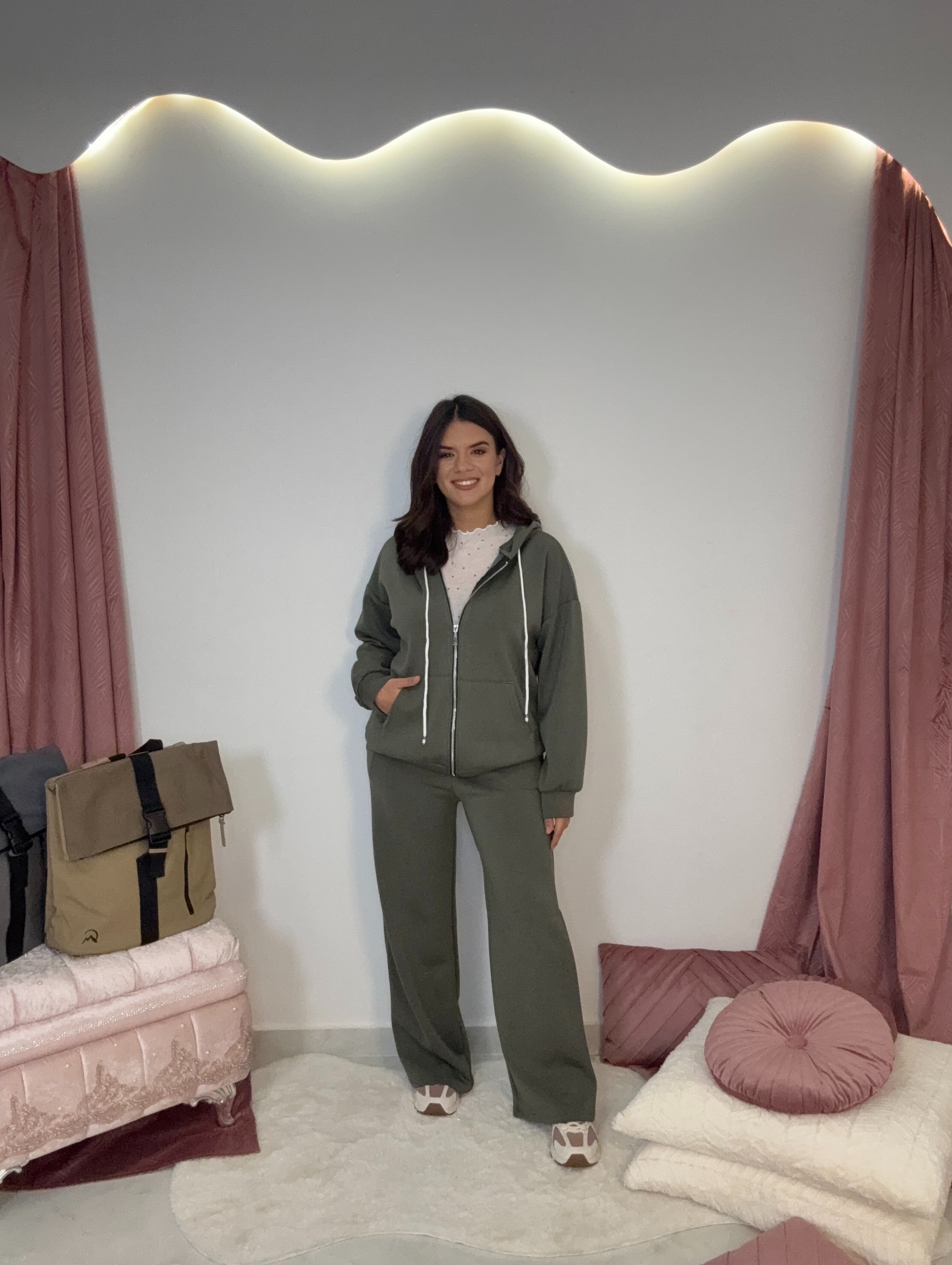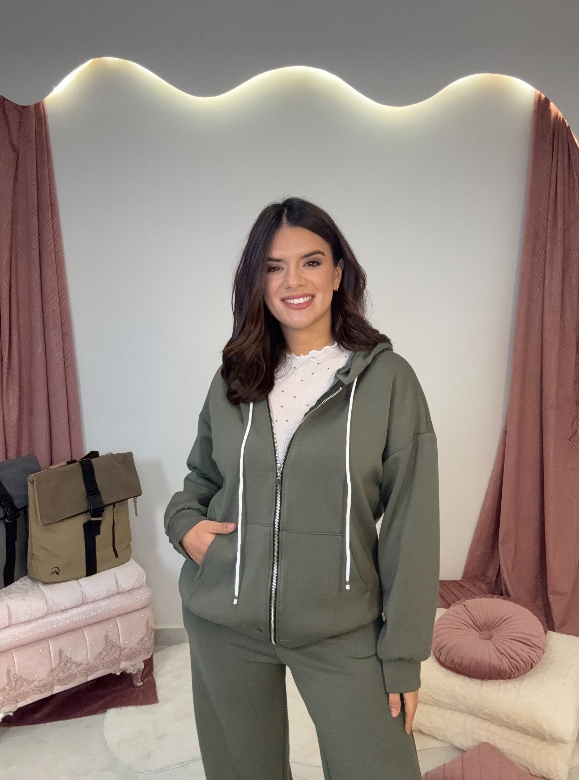 Σετ με ζακέτα και παντελόνι σε άνετη εφαρμογή