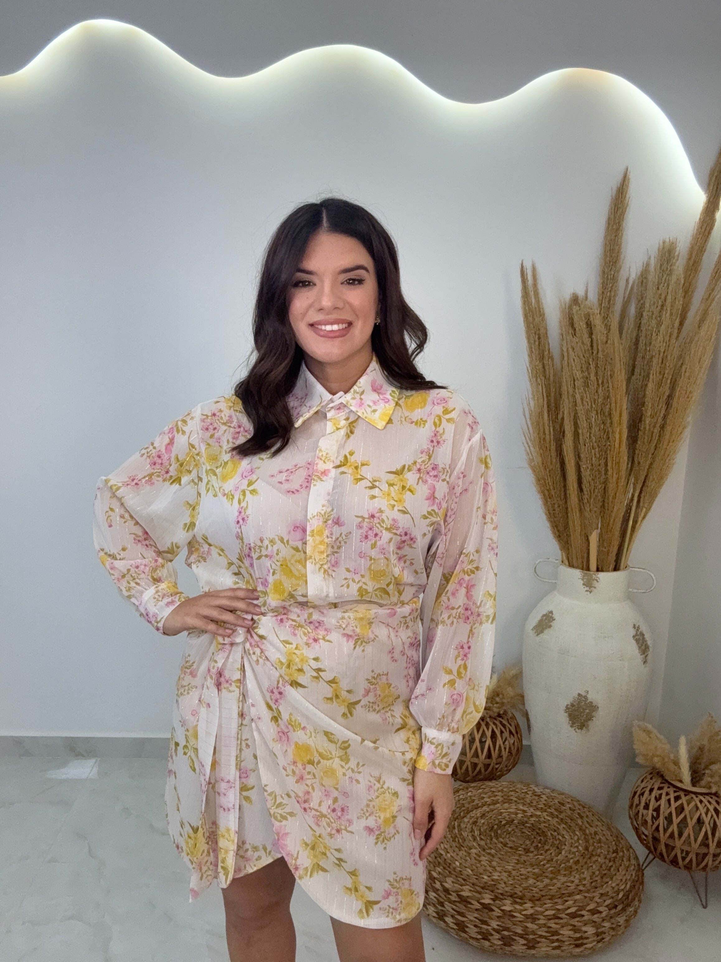 Σετ πουκάμισο και φούστα floral με ασημοκλωστή