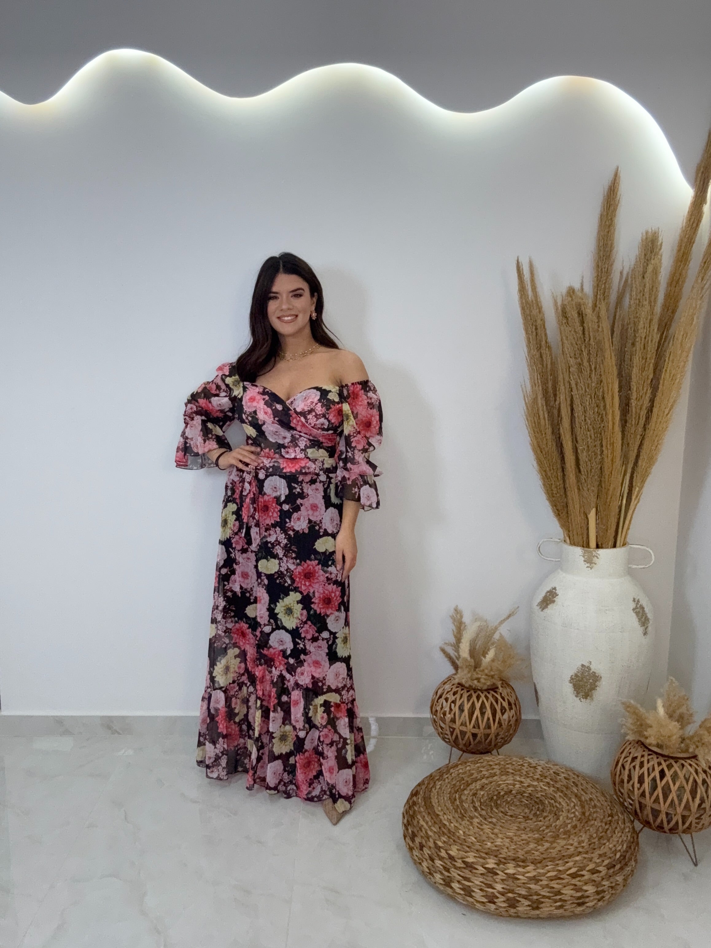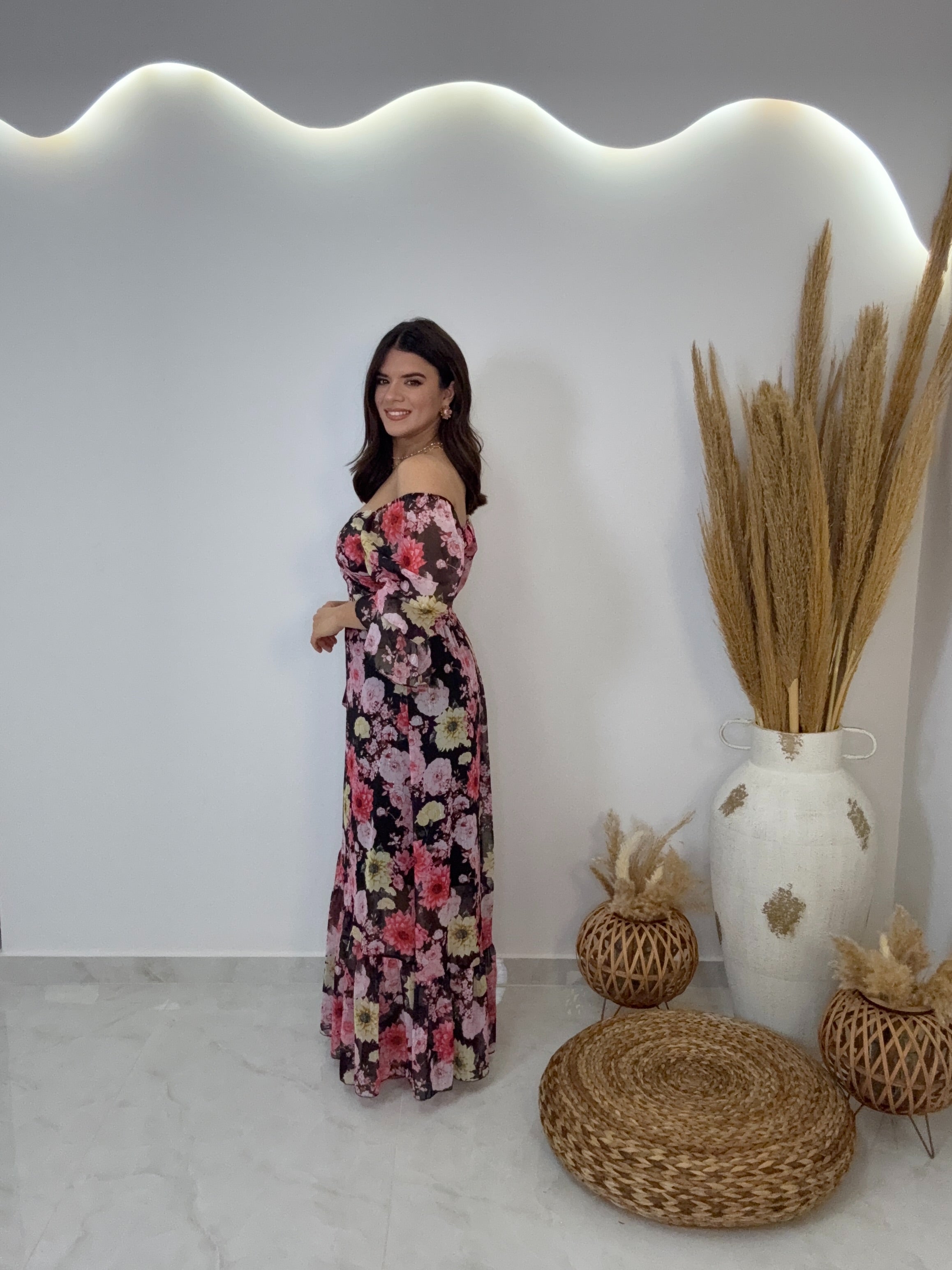 Floral set τοπ και φούστα με ασημοκλωστή